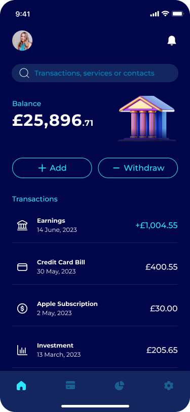 A finance app for easy expense tracking, budgeting, and investment monitoring, with personalized recommendations to help you reach your financial goals.
